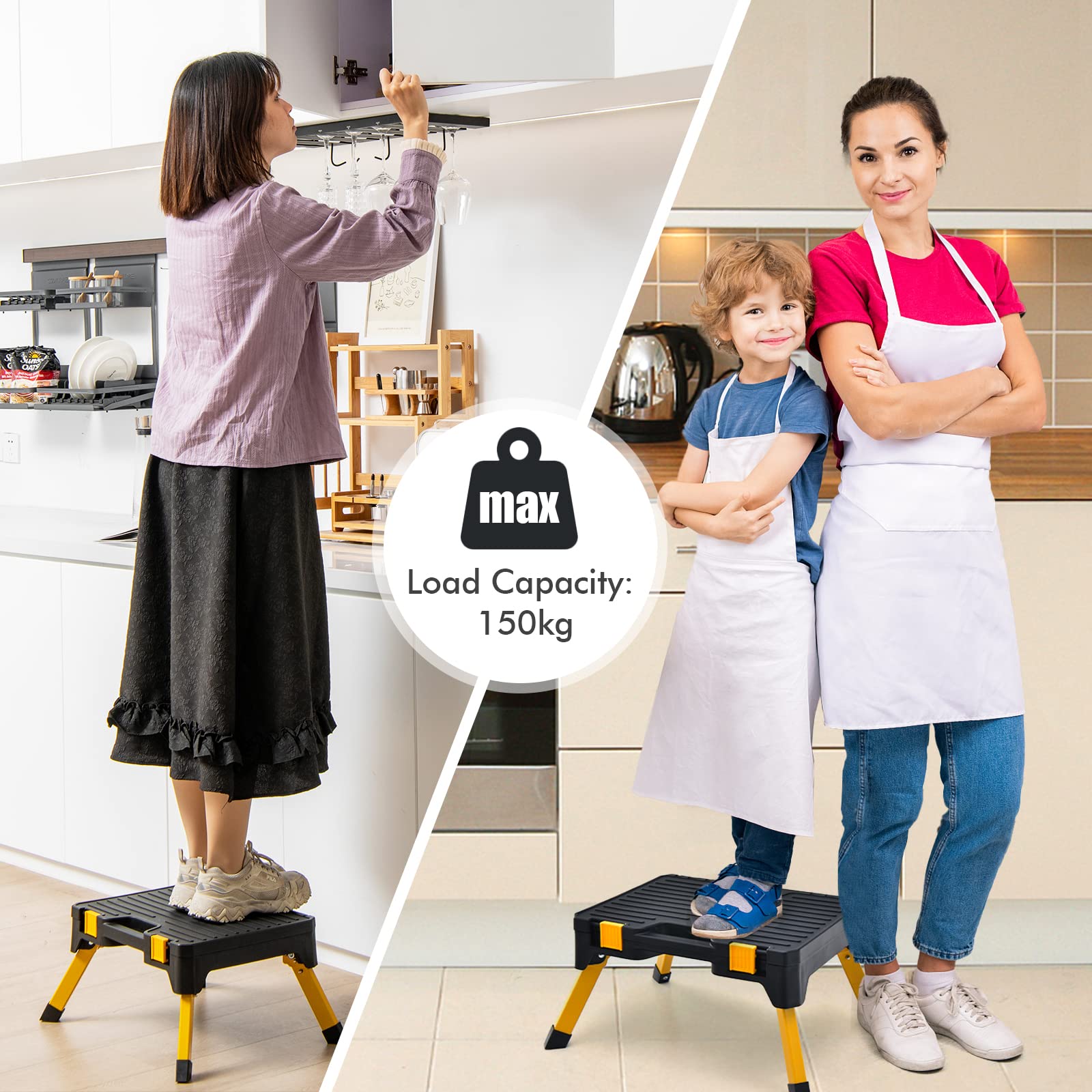 Stable Structure: Constructed of high quality steel, this step stool features high stability and a long service life. With the load capacity of 150 kg, the stool can be used for child and adult thanks to the locking buckle on the legs which hold the whole structure together securely.