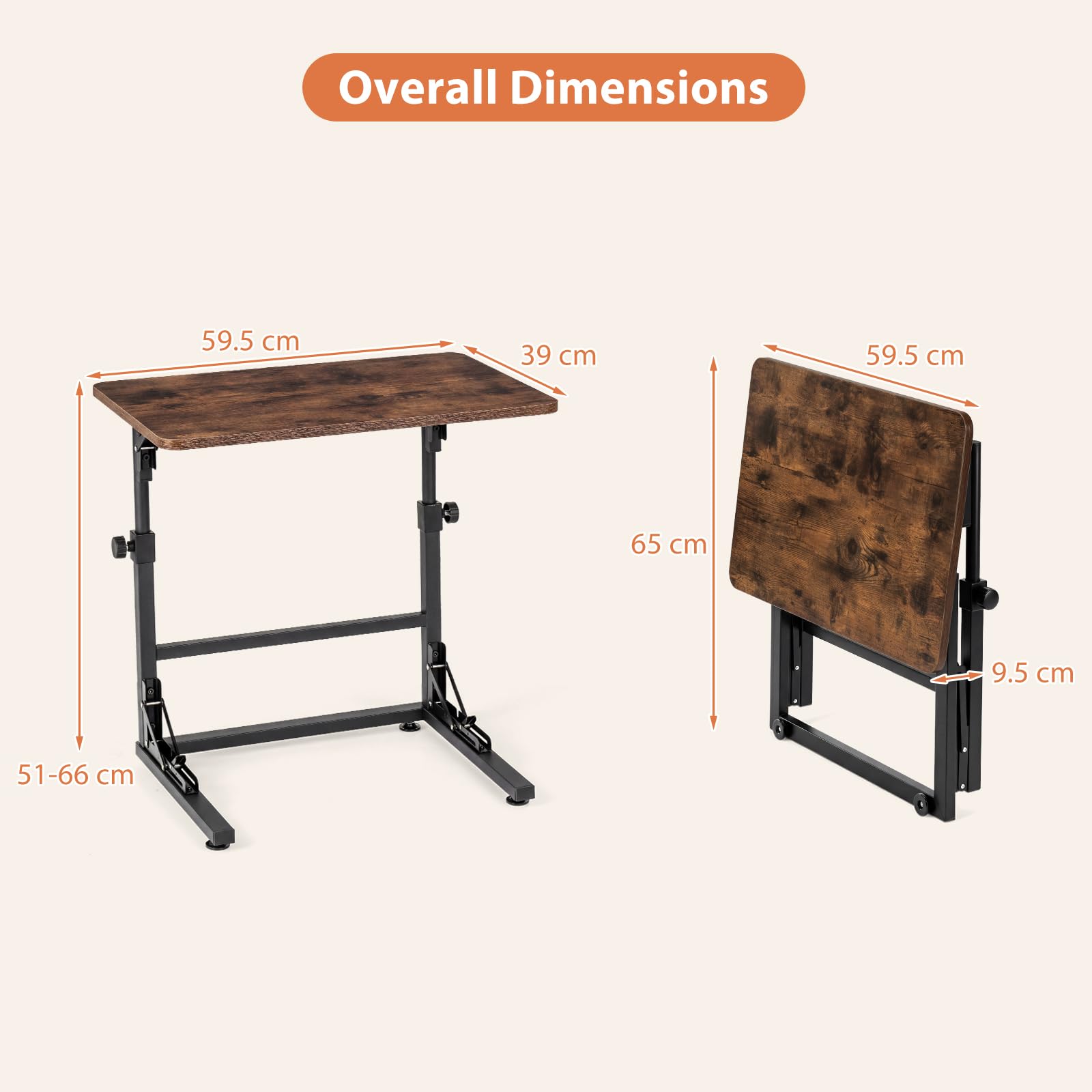 - Overall Dimensions: 59.5 x 39 x 51-66 cm (L x W x H)