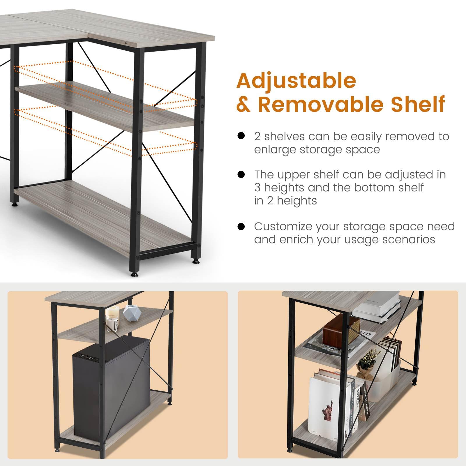 Giantex L-Shaped Desk 120 cm Writing Study Laptop Desk with Adjustable Storage Shelves