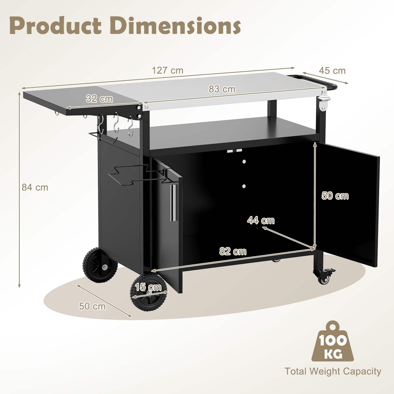 Grill Cart with Storage Outdoor Kitchen Island with Folding Stainless Steel Top