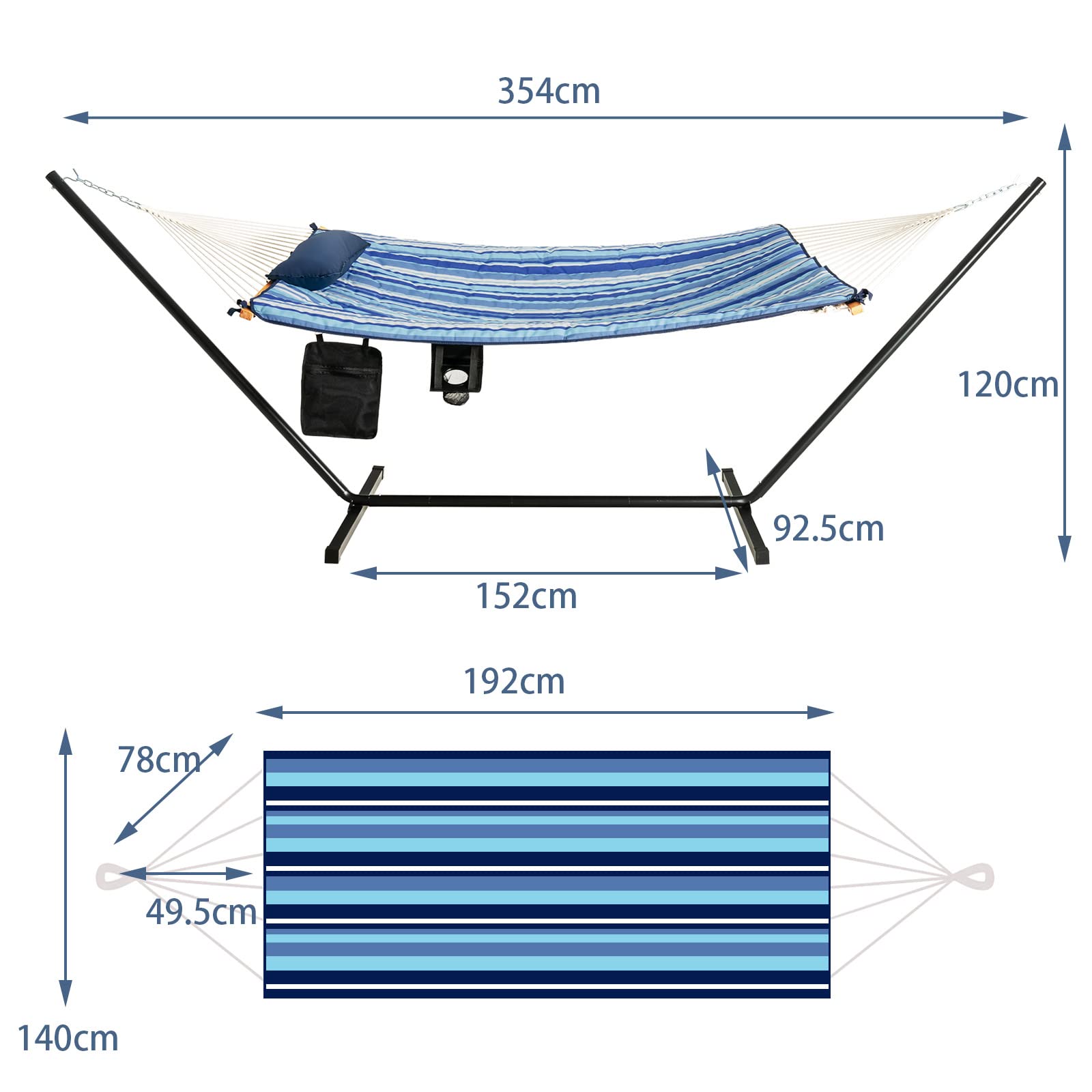 Size of hammock: 194 x 140 cm (L x W)