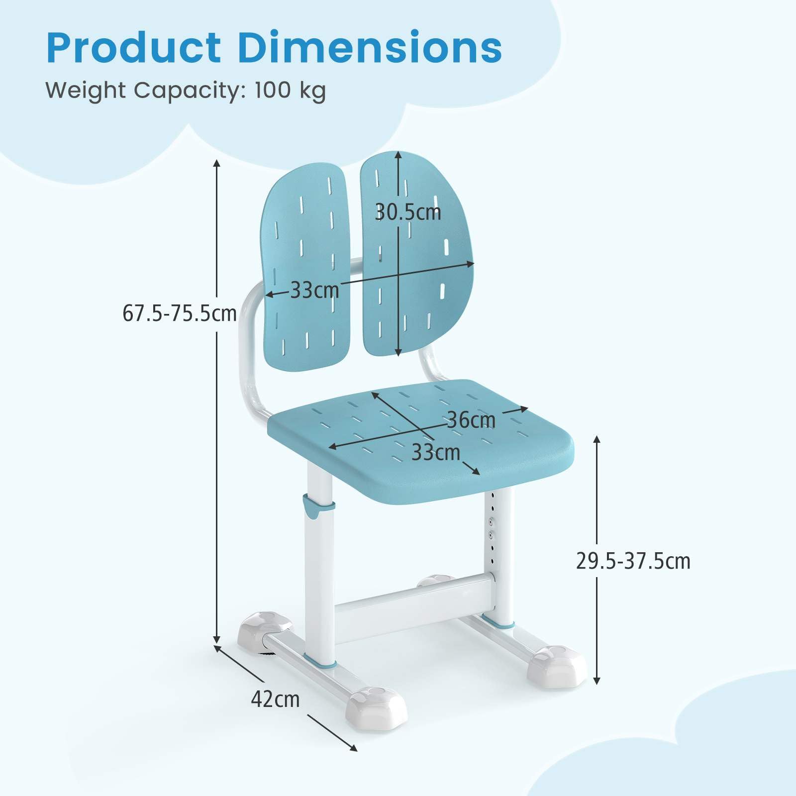 Height-Adjustable Kids Desk Chair, Children Study Chair w/Double Back Support & Breathable Seat