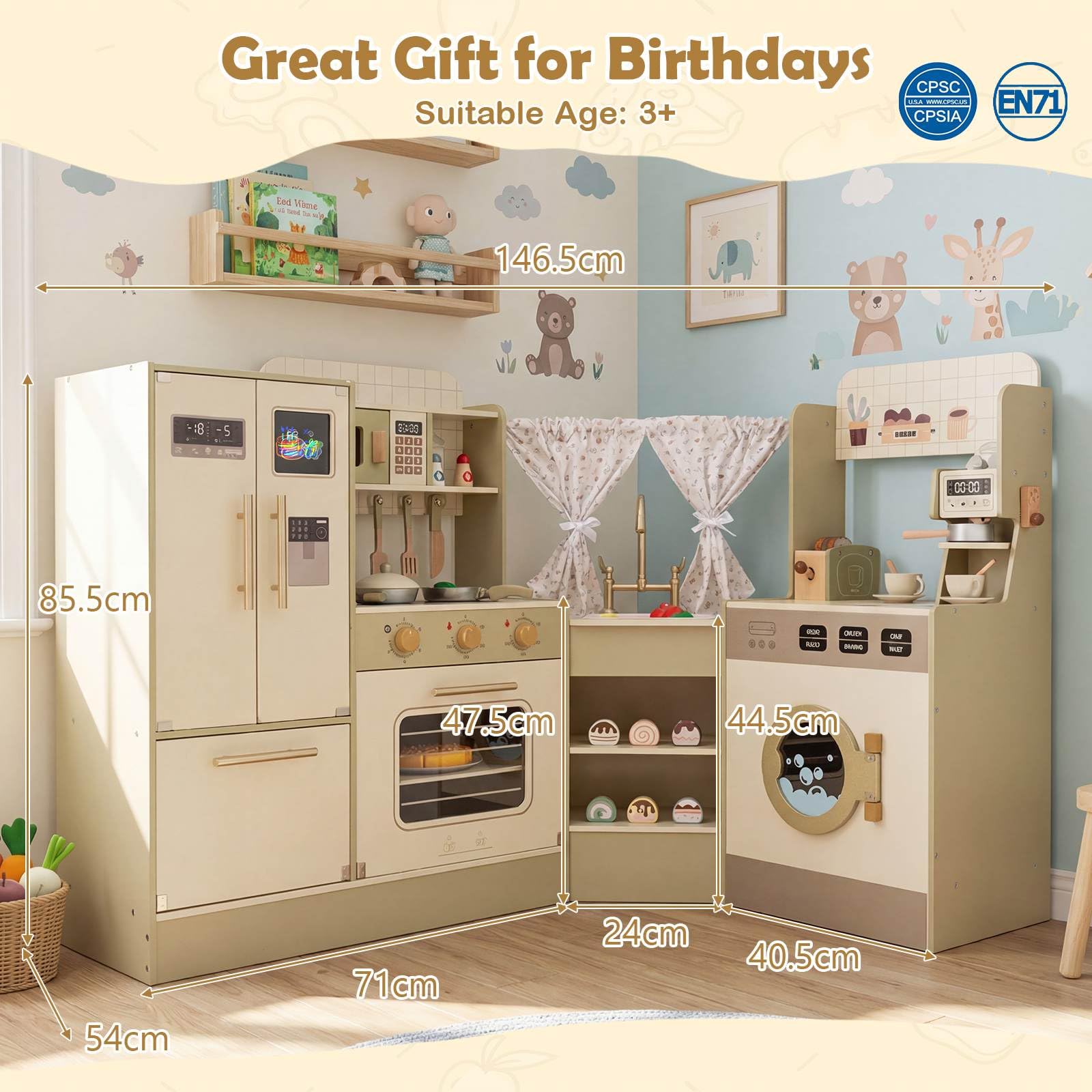 Safe & Thoughtful Gift Choice: The kids play kitchen is the perfect present for young explorers with rounded corners for extra safety. EN71 and CPSIA compliant, this toy kitchen is perfect for kids ages 3 and up, delivering not only hours of creative play but also peace of mind for parents.