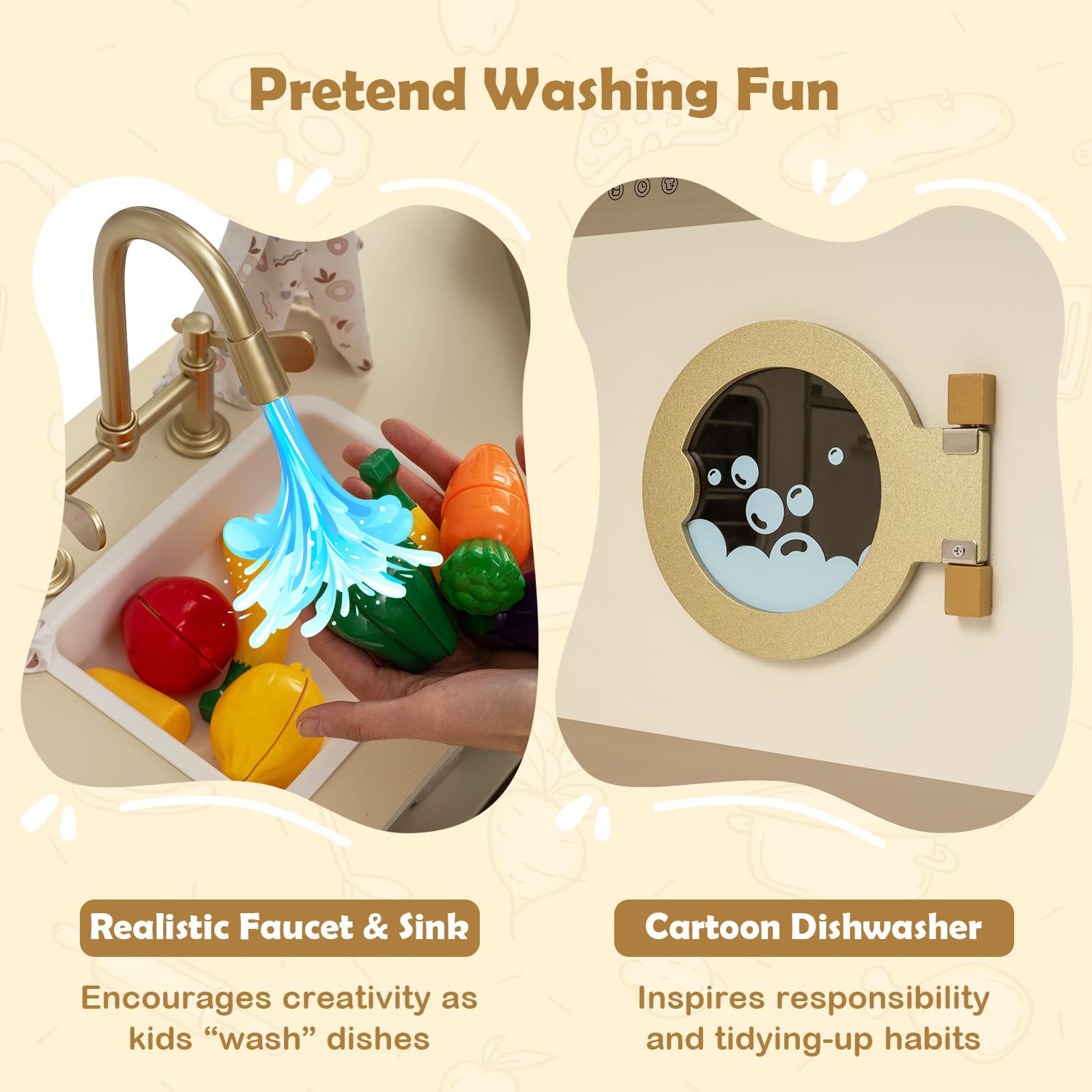 Pretend Washing Delight: Make cleaning up as fun as cooking with the all-in-one toy kitchen, featuring a removable sink, easy-to-use faucet, and an adorable cartoon dishwasher. Children will love "washing" dishes and learning real-life skills through imaginative play, developing responsibility and gaining confidence.