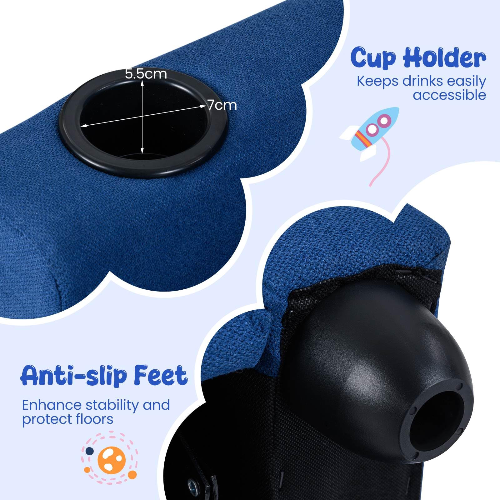 Featuring a push-back reclining mechanism and retractable footrest, this kids sofa provides customized comfort to suit your child's preferences. The spring-loaded seat cushion with high-density sponge filling offers a comfortable seating solution for playtime, reading, or relaxation. Upholstered in waterproof PU leather, this toddler reclining chair looks luxurious and is easy to clean. The built-in cup holder adds convenience to enjoying snacks or drinks during downtime. Moreover, constructed with a solid wood frame, this recliner ensures superior stability and durability to keep up with active use.