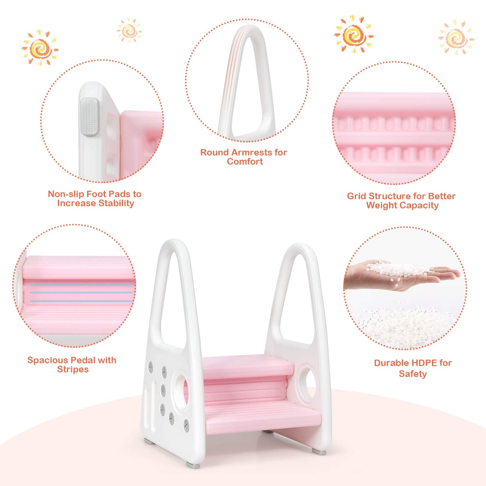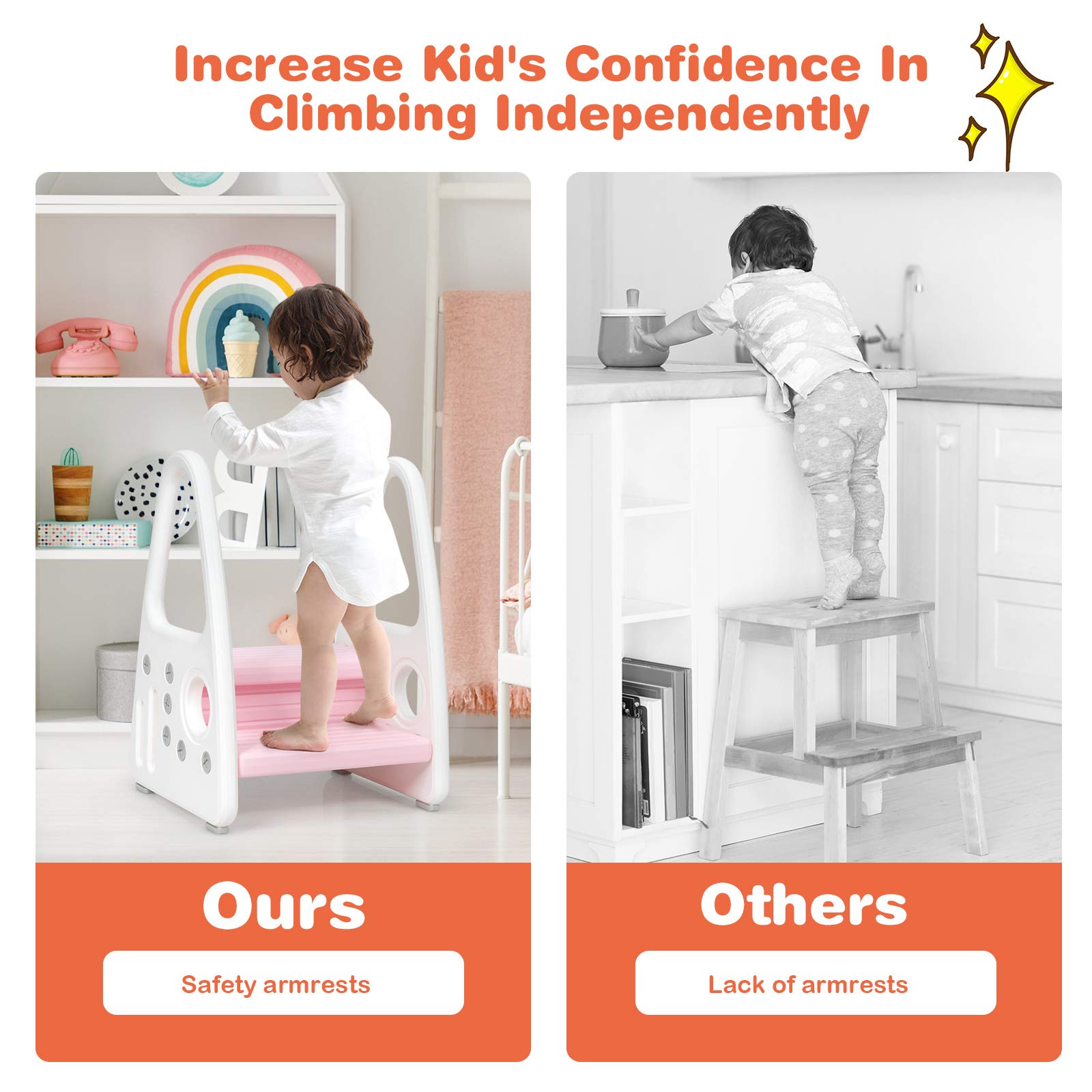 Kids Step Stool, Toddler Step Ladder with Safety Handles & Non-Slip Steps