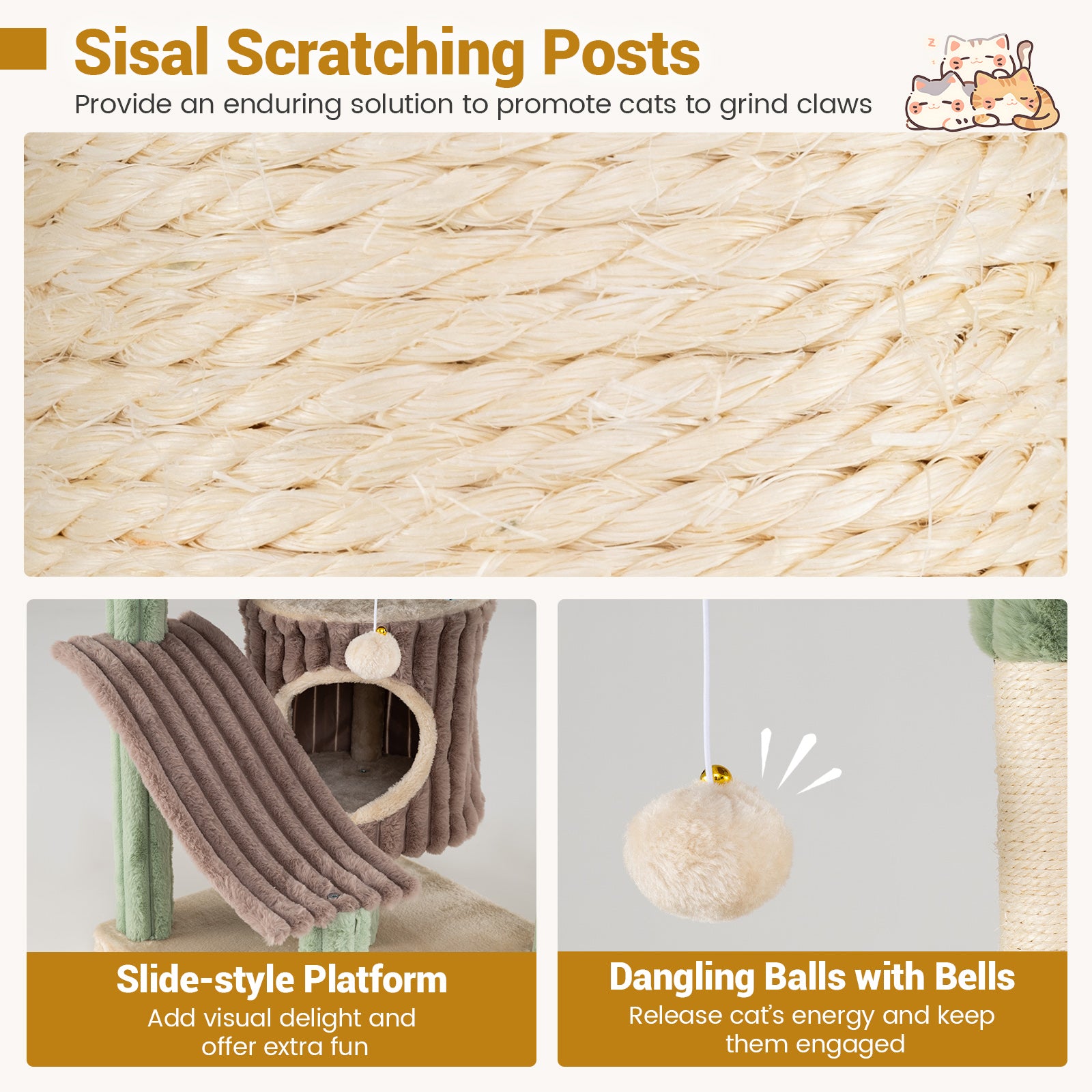 Multi-level Entertainment: The large cat tower boasts multiple platforms that encourage feline exercise. An amusement park-like slide platform adds an extra element of fun. Also, the inclusion of scratching posts and plush toys with jingles satisfies cats' natural instincts and keeps them entertained.