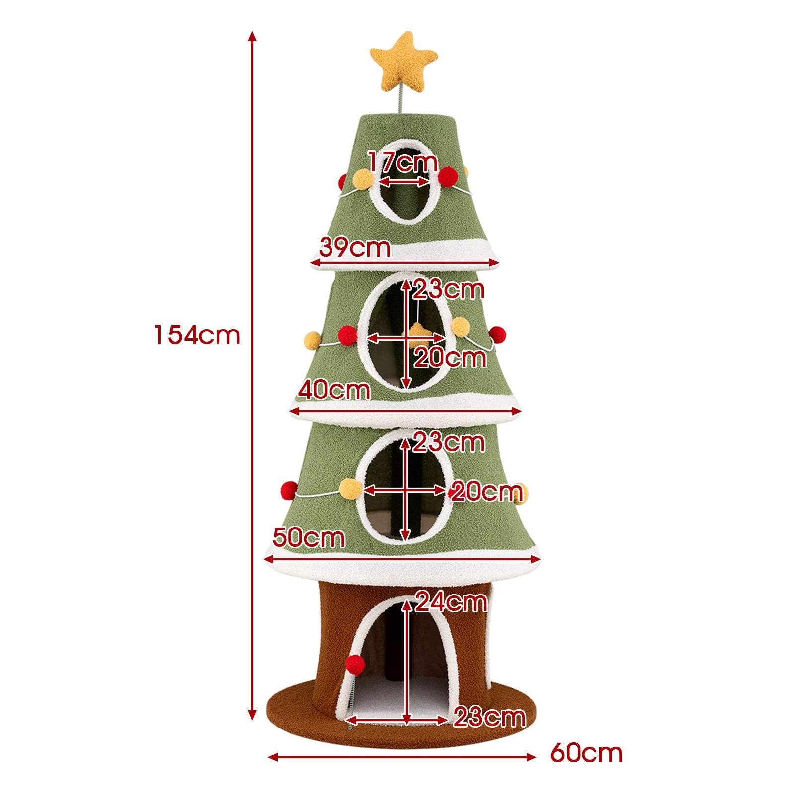 Large Christmas Cat Tree for Indoor Cats, 154 cm Cute Cat Tower with 4 Condos