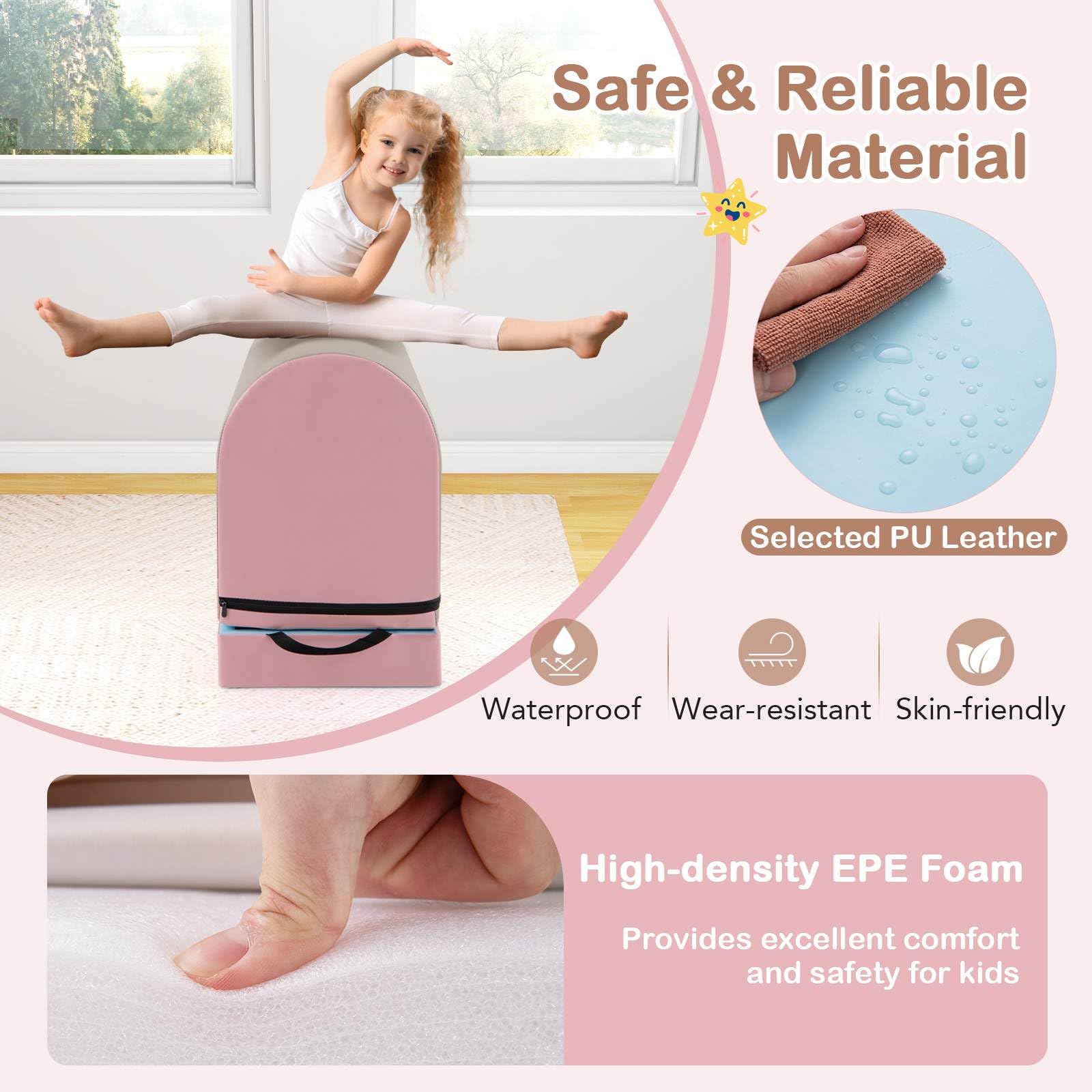 Multifunctional Tumbling Mat: This tumbling mat features a mailbox shape that can help young gymnasts perform standard movements. It offers versatile training including vaulting horse, backbend practice and gymnastics, allowing children to learn and improve their skills with ease.