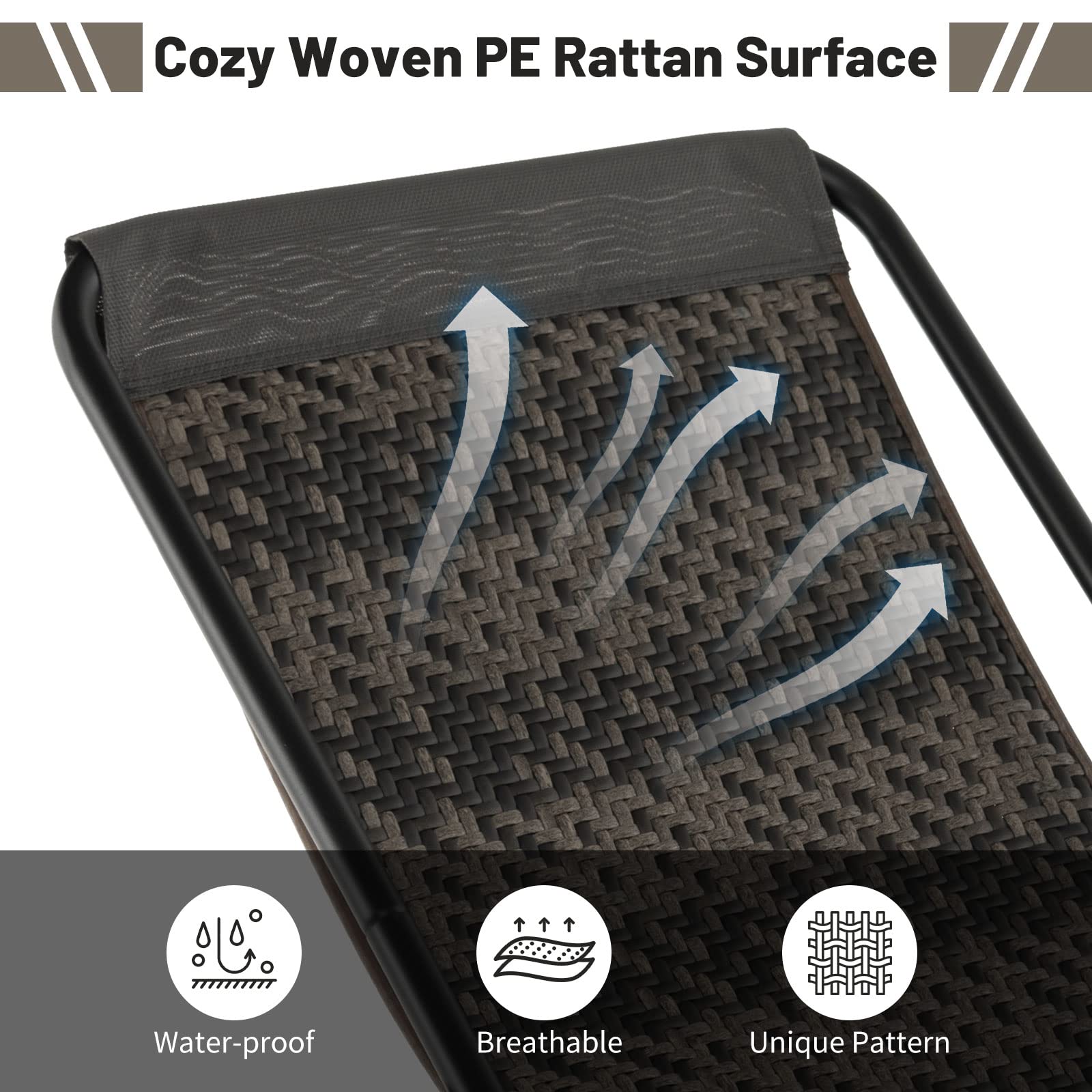 Selected PE Wicker: The lying area is made of selected mix gray PE wicker that is colorfast, sun-protective, breathable and durable to ensure a longer outdoor lifespan while avoiding stuffiness for comfort.