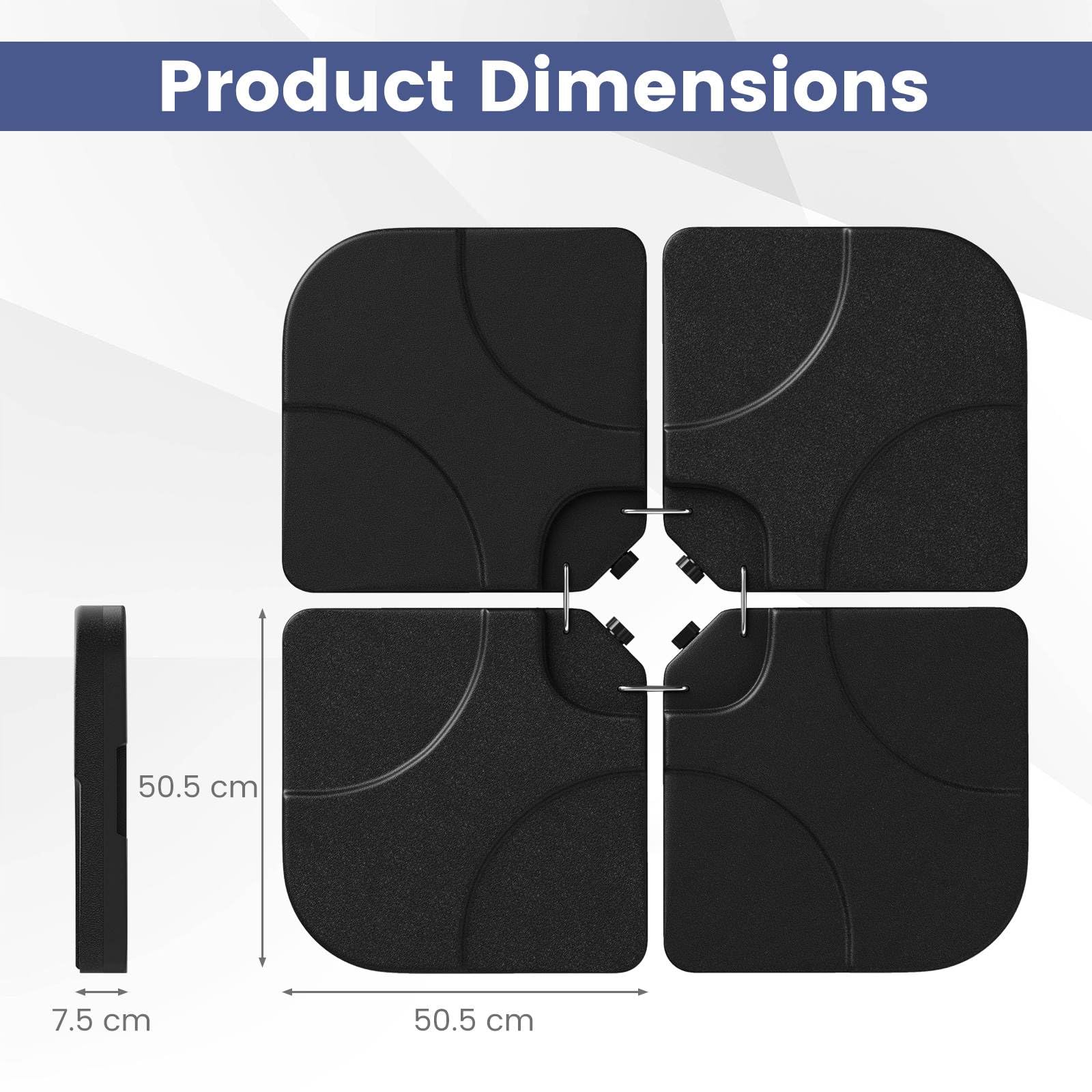 This brand-new water-filled umbrella base is a durable base for your patio umbrella. It’s constructed of heavy-duty HDPE plastic with weather-resistant UV protection that prevents colour from fading and is easy to maintain. It can be filled with 72kg sand /52kg water so that plates provide additional weight to make your patio umbrella stand perfectly in windy conditions, You don’t need to worry about any puff of wind which disturbs your summer relaxation in the shade. Don't hesitate to buy one!
