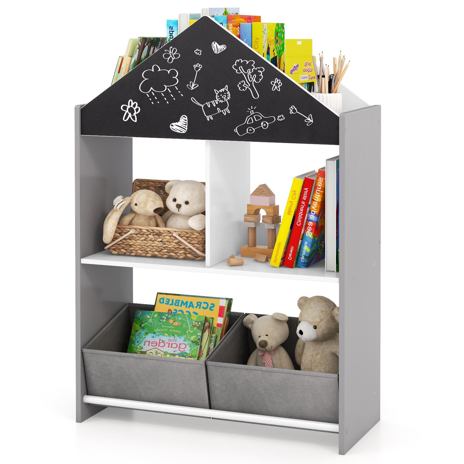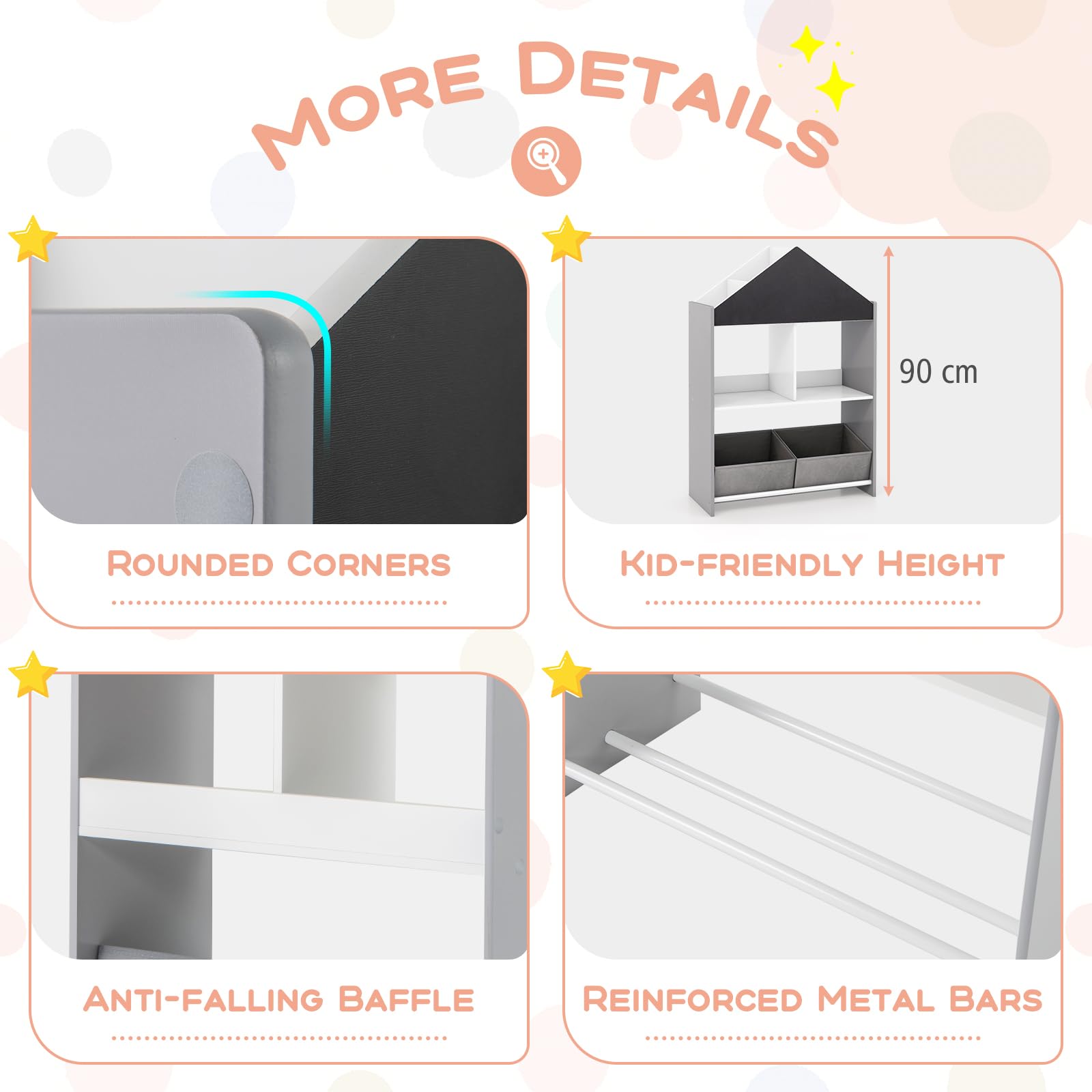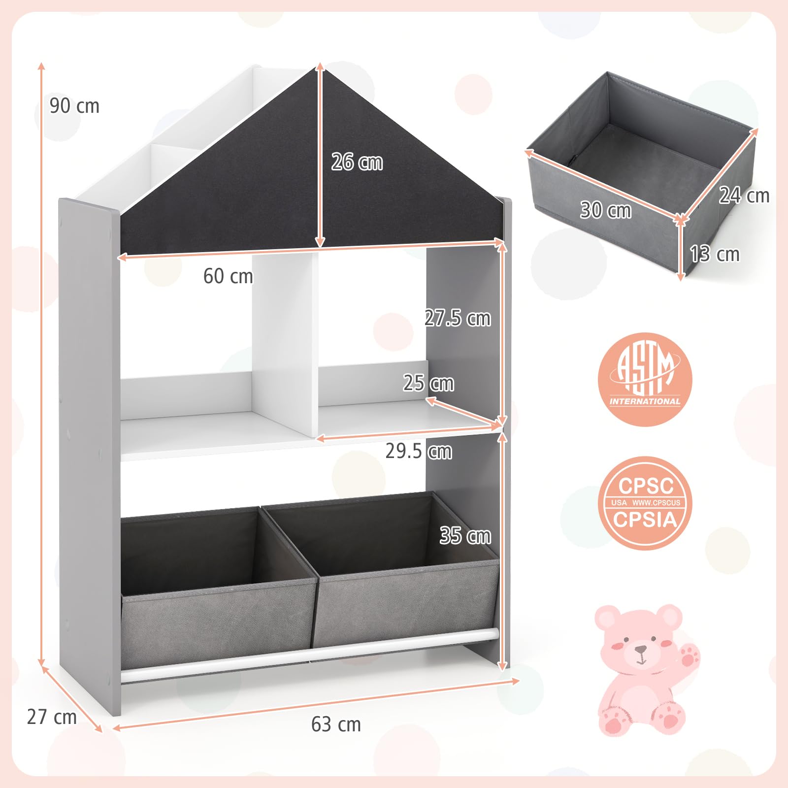 Playhouse Kids Bookshelf with Writable Chalkboard and Whiteboard