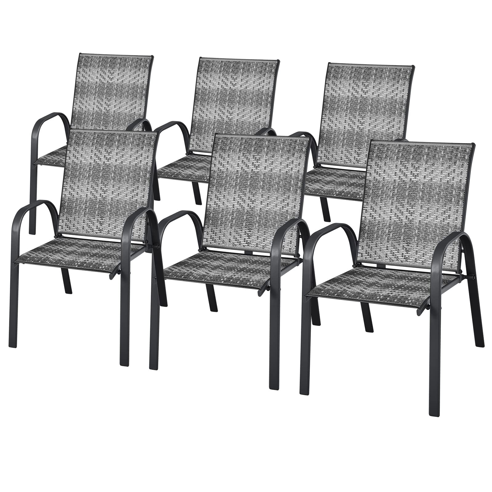 Set of 6 Outdoor PE Wicker Stackable Chairs for Garden & Yard & Deck & Lawn
