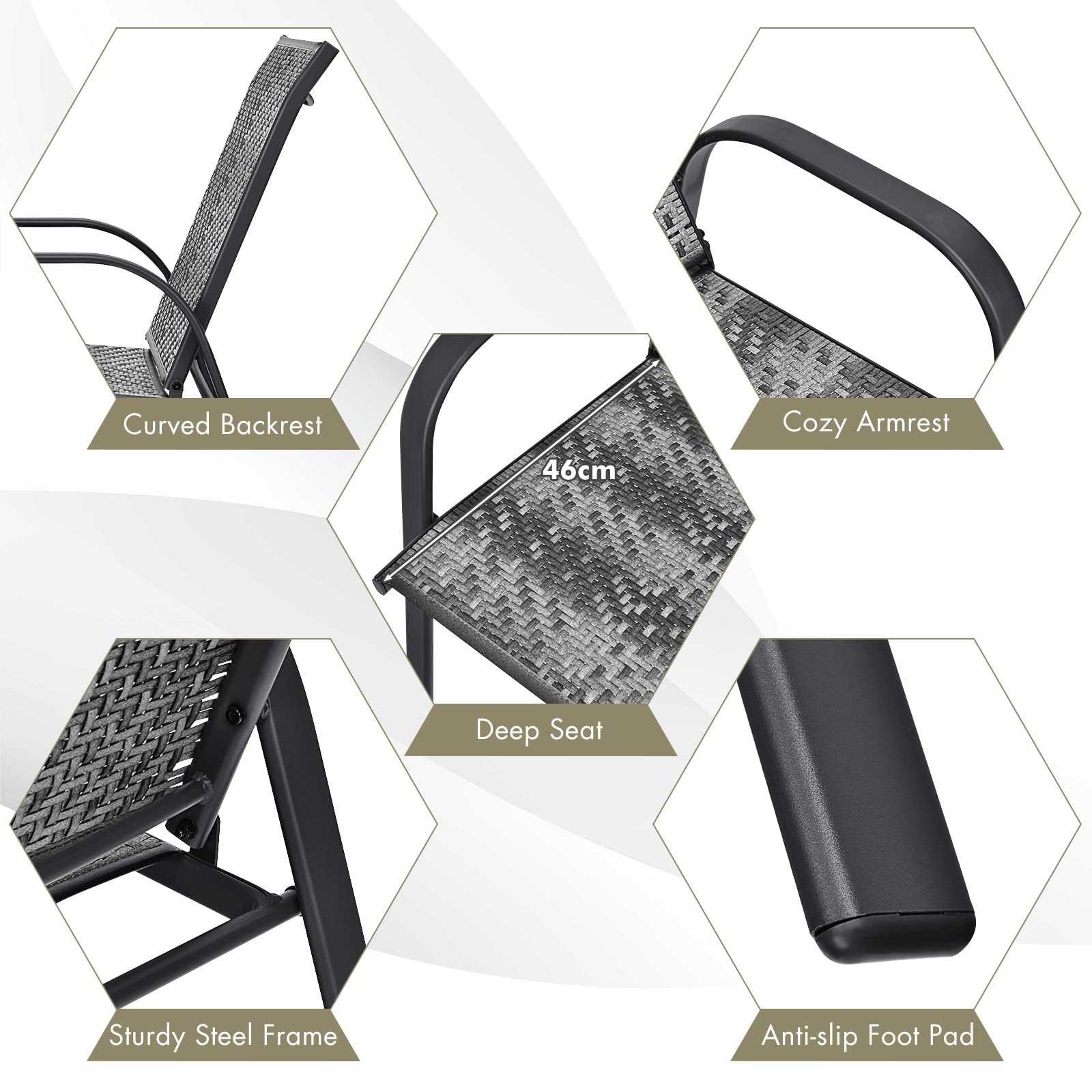 Rustproof steel frame and all-weather PE rattan for better outdoor performance