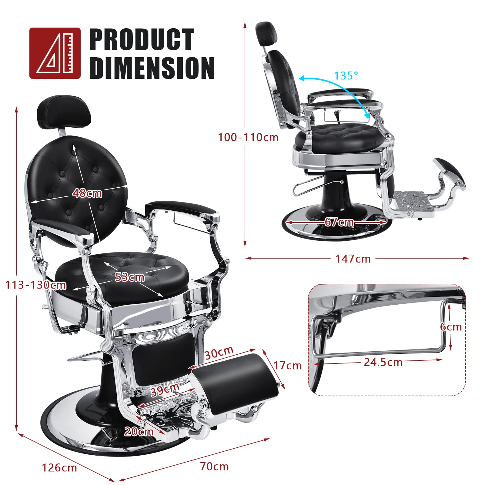 Durable & Comfortable Chair: The vintage barber chair is covered with premium PVC leather that is stain-resistant and waterproof for easy cleaning while providing a comfortable skin touch. Moreover, padded with high-density sponges with high-rebound and ultra-soft features, the styling chair provides an excellent sitting experience.