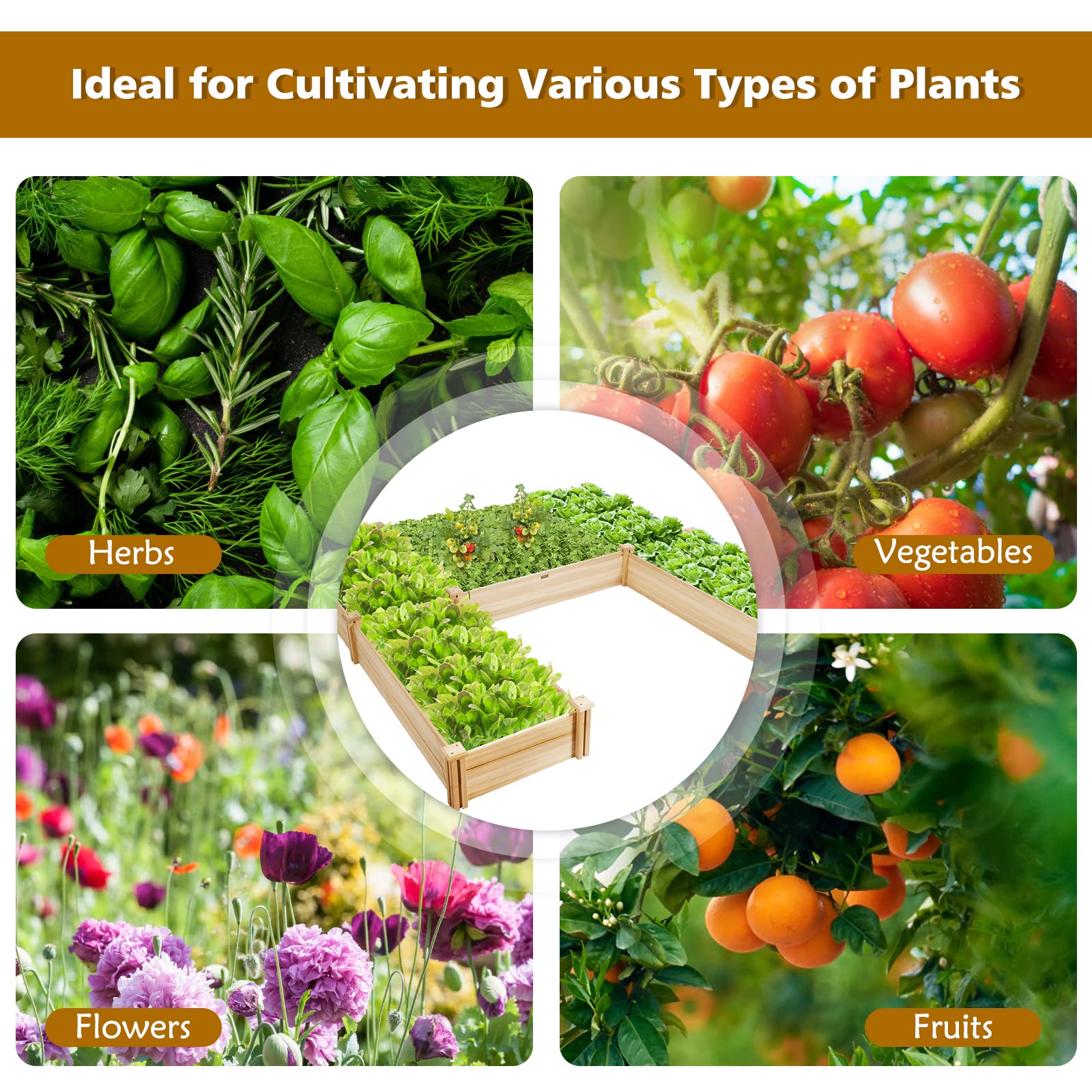 100% Solid Fir Wood: The frame of garden bed is made of natural fir wood, which is not easy to deform or crack. And the whole structure is sturdy enough to strongly support the weight of soil and plants. Besides, there are no chemical additives that are harmful to people.